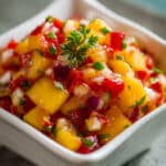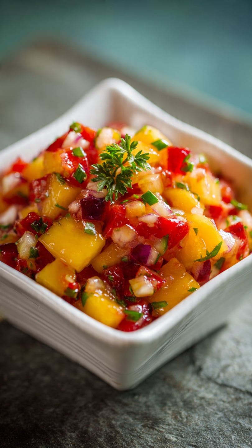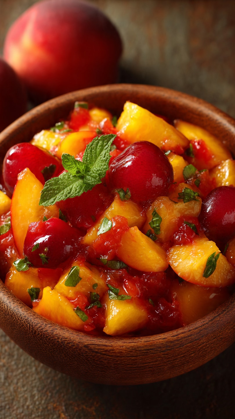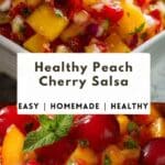 A vibrant and refreshing peach cherry salsa made with juicy summer fruits, fresh herbs, and a tangy lime kick. Perfect as a dip, topping, or light side dish for warm weather meals.