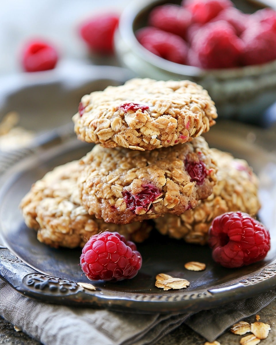 I love how these cookies strike the perfect balance between healthy and delicious. They’re naturally sweetened with maple syrup or mashed banana, loaded with fiber from oats, and packed with fresh or frozen raspberries that burst with every bite. I can make them in under 30 minutes, and they’re freezer-friendly, which means I always have a batch ready when I need a little pick-me-up.