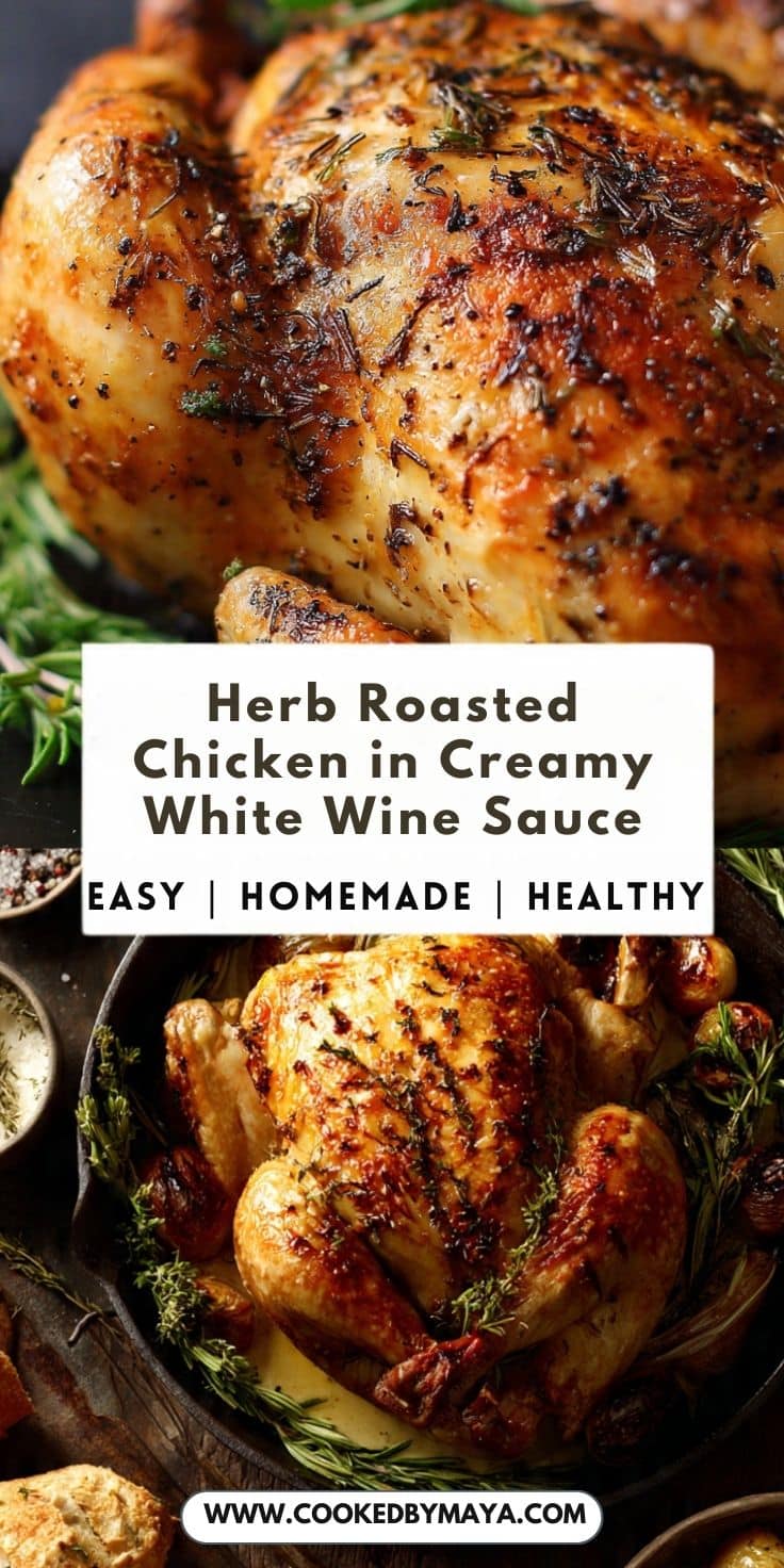 Herb Roasted Chicken in Creamy White Wine Sauce is one of my favorite elegant comfort meals. It features tender, golden-roasted chicken infused with fresh herbs, simmered in a luxurious white wine cream sauce that’s bursting with garlic, shallots, and a splash of brightness. Whether I’m hosting dinner or just craving something cozy and elevated, this dish never lets me down.