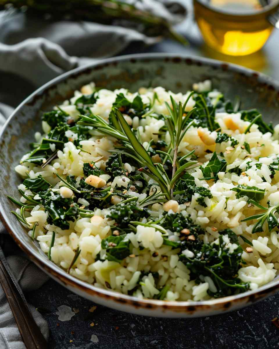 I store leftovers in an airtight container in the refrigerator for up to 3 days. When reheating, I warm the rice and kale gently in a pan or microwave, then add fresh herbs and lemon juice afterward to keep the flavors bright.