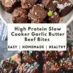 These High Protein Slow Cooker Garlic Butter Beef Bites are juicy, tender, and rich in garlicky flavor. Perfect for busy weeknights or meal prep, this protein-packed slow cooker beef recipe melts in your mouth and is cooked in a buttery garlic herb sauce. Ideal for low-carb, keto, or high-protein diets, this easy slow cooker dinner is a flavorful family favorite.