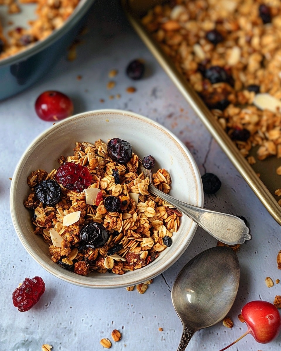 - If the granola softens, reheat it in the oven at 300°F (150°C) for 5–7 minutes to restore crispness.