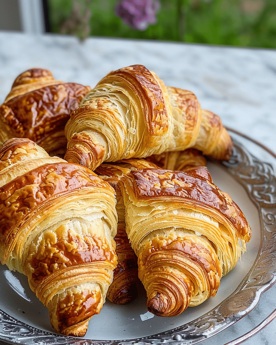 Flaky, buttery homemade croissants with delicate layers and a tender interior—just like classic French bakery croissants, made from scratch with laminated dough.