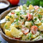 Homemade Greek Potato Salad is a light, vibrant side dish made with tender potatoes, a zesty lemon-olive oil dressing, fresh herbs, red onion, and olives. It’s a Mediterranean twist on a classic that’s perfect for warm-weather meals.