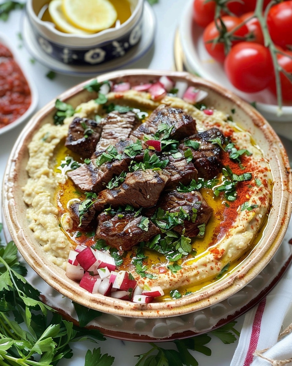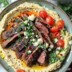 I love the contrast of textures and flavors in this dish—the smoothness of the hummus with the bold, savory richness of steak. It’s versatile, filling, and can be served warm or cold. I make it when I want something nourishing and impressive without spending hours in the kitchen. It also works great as a shareable appetizer or a main course.