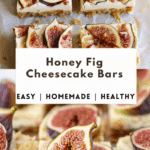 These Honey Fig Cheesecake Bars are a stunning dessert that combines creamy cheesecake, a buttery graham cracker crust, and a glossy topping of sweet figs and floral honey. Perfect for holidays, brunches, or special occasions, they’re easy to slice and serve, and sure to impress.