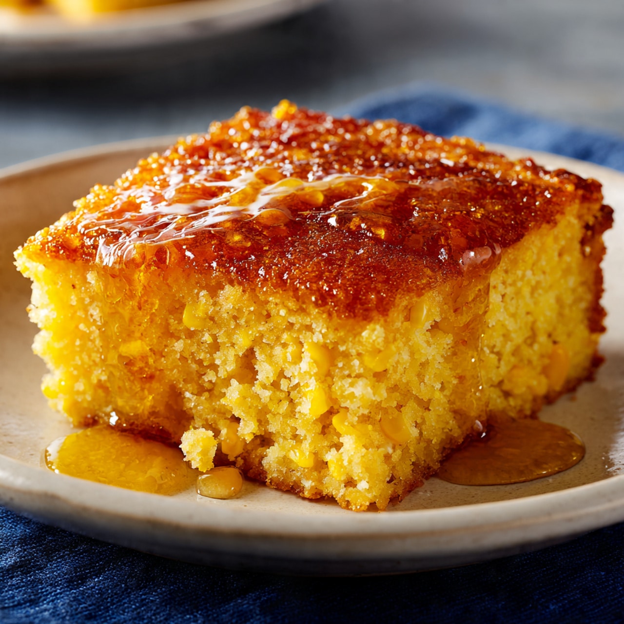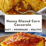A warm and comforting honey glazed corn casserole with a soft, creamy texture and bursts of sweet corn, perfectly balanced with a touch of honey for a delicious side dish.