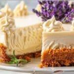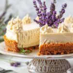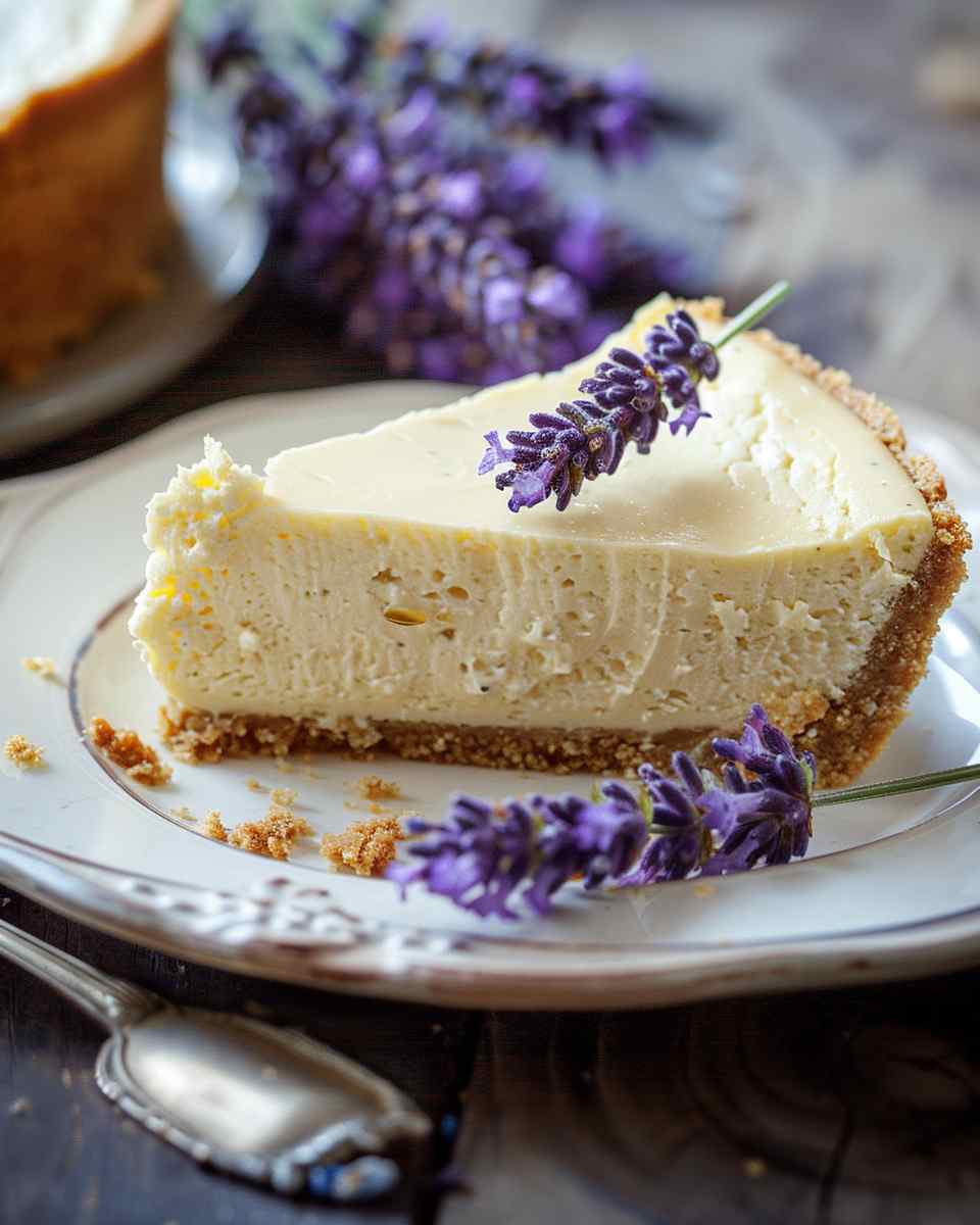 A delicate and creamy honey lavender cheesecake with a buttery crust, infused with floral lavender and naturally sweetened with honey for an elegant and comforting dessert.