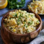I store leftovers in an airtight container in the fridge for up to 3 days. To reheat, I warm it in a skillet with a little extra butter or splash of water to loosen it up, or microwave it in short intervals until hot. I don’t recommend freezing it, as the texture of the rice and corn can change.