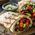 I store the grilled vegetables separately in an airtight container in the refrigerator for up to 3 days. I assemble the wraps just before eating so the tortillas don’t get soggy. If needed, I reheat the vegetables briefly before assembling.