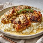 Rich and comforting creamy garlic parmesan chicken thighs featuring tender, juicy chicken simmered in a smooth, garlicky parmesan sauce that’s deeply flavorful and satisfying.