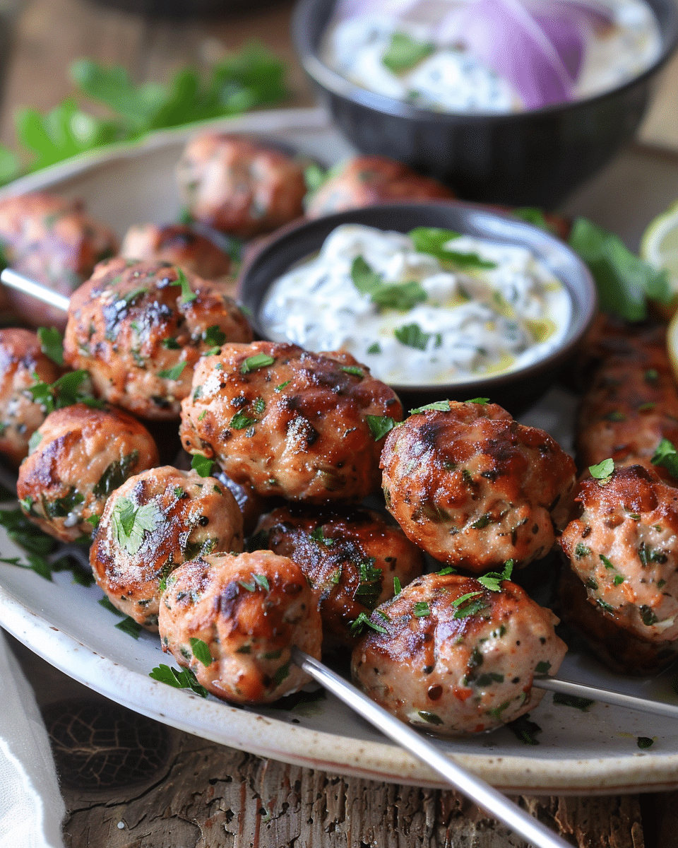 PrintIrresistible Chicken Kofta with Creamy Garlic Yogurt Sauce