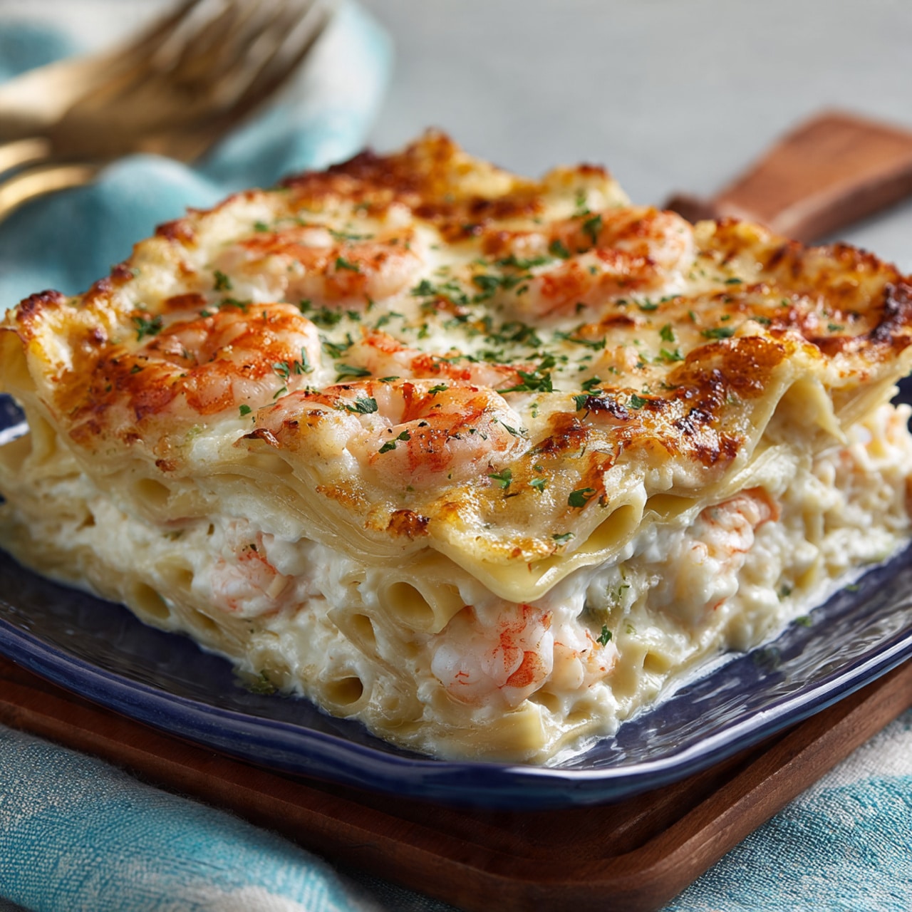 A rich and indulgent crab and shrimp seafood lasagna layered with tender seafood, creamy sauce, and melted cheeses for a comforting yet elegant dish perfect for special occasions or family dinners.
