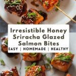 Quick and flavorful salmon bites coated in a sticky honey sriracha glaze, combining sweet, spicy, and savory flavors for a bold and satisfying dish.