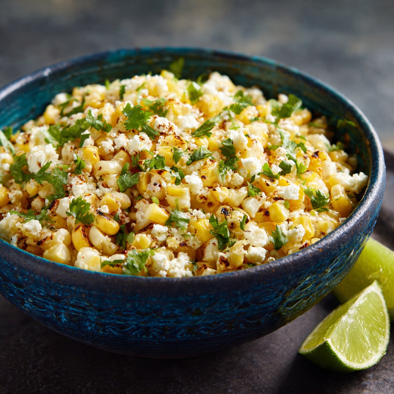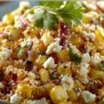 A bold and creamy Mexican street corn salad made with sweet corn, tangy lime, cotija cheese, and warm spices for a vibrant and easy side dish perfect for gatherings or weeknight meals.