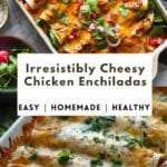 A rich and comforting dish of cheesy chicken enchiladas filled with tender shredded chicken, flavorful spices, and topped with a savory enchilada sauce and melted cheese.