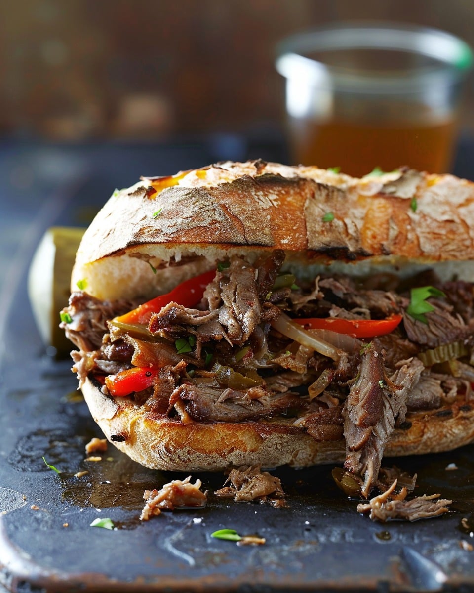 I love this sandwich because it’s hearty, packed with flavor, and incredibly satisfying. The beef cooks low and slow until it’s fall-apart tender, soaking up all the seasoning from the broth. I can keep it mild with sweet bell peppers or crank up the heat with spicy giardiniera. It’s a total crowd-pleaser and the kind of recipe that makes the whole house smell amazing.