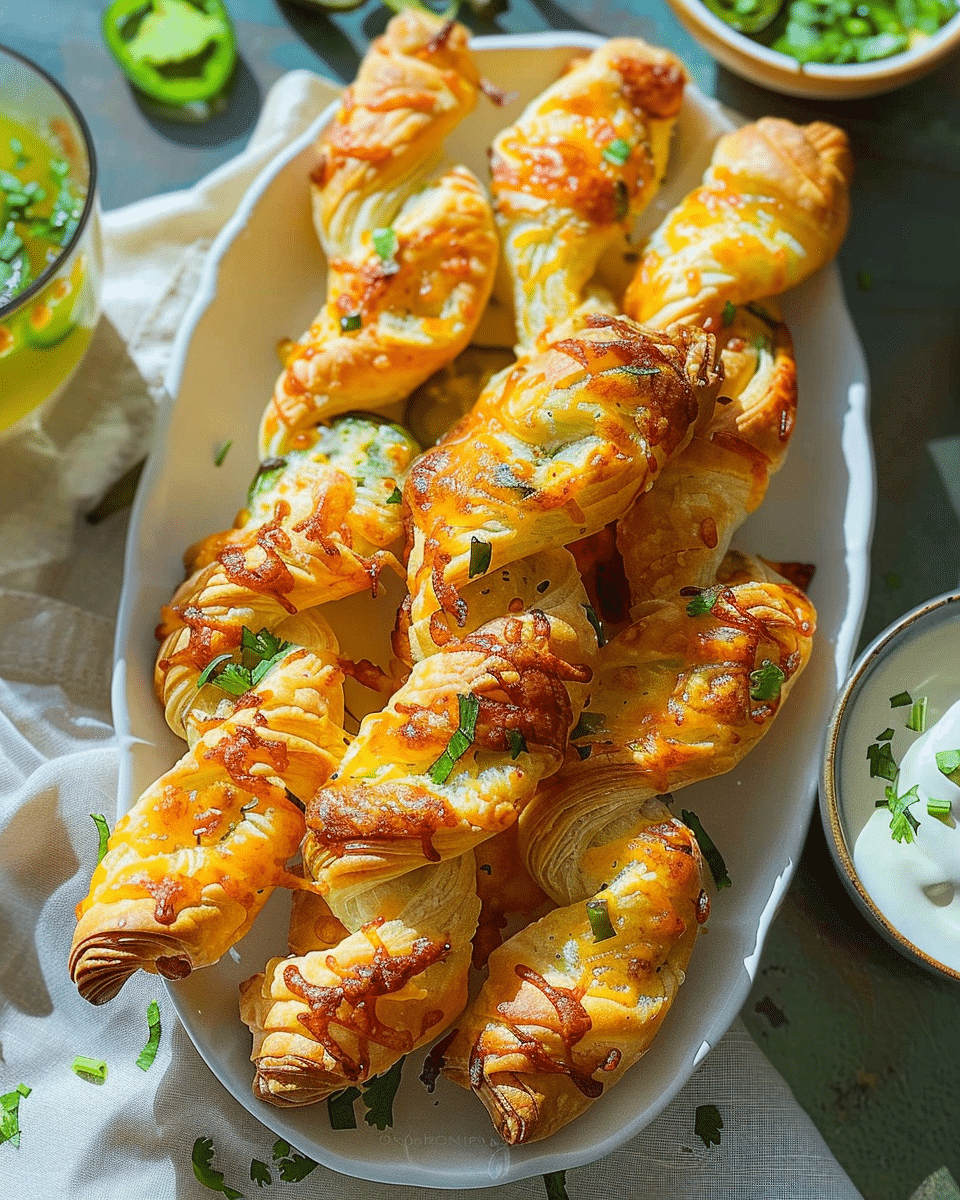 I love this recipe because it’s fast, easy, and always a hit. The puff pastry bakes up golden and crisp, the filling is gooey and flavorful, and I don’t have to deep-fry anything to get that jalapeño popper fix. Whether I’m hosting or just snacking, these twists always bring the heat and the crunch.
