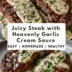 PrintJuicy Steak with Heavenly Garlic Cream Sauce
