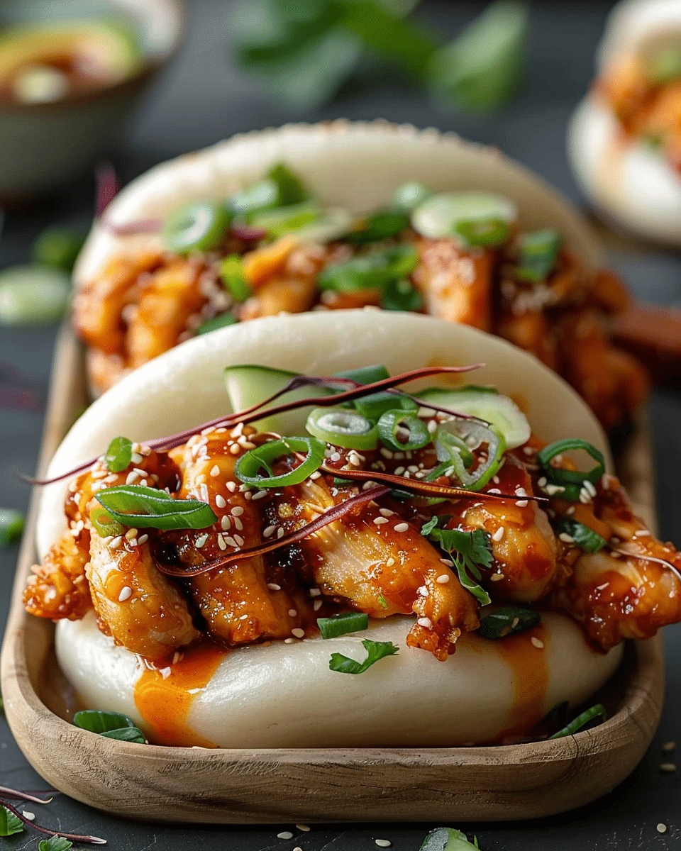 Korean Chicken Bao is the ultimate street-food-inspired dish featuring fluffy steamed bao buns filled with crispy fried chicken coated in a sweet and spicy gochujang glaze. This homemade bao recipe delivers bold Korean flavors and irresistible texture, perfect for a showstopping meal or crowd-pleasing appetizer.