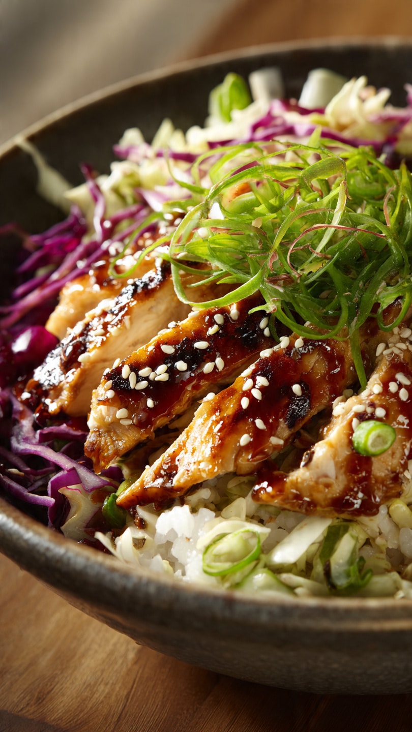 PrintKorean-Style BBQ Chicken Bowls with Crunchy Cabbage and Sesame