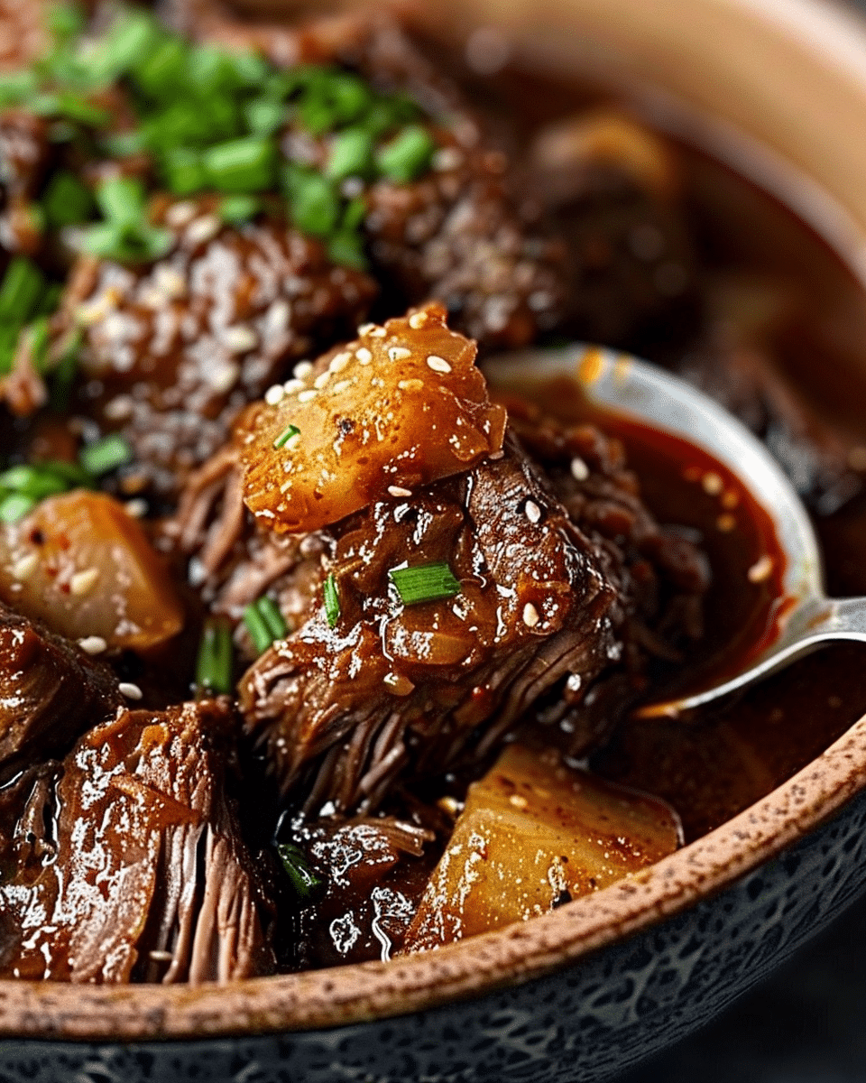 Sometimes I add shiitake mushrooms or napa cabbage to the pot during the last hour of cooking for extra flavor and texture. For a sweeter version, I use a bit more brown sugar or even a spoonful of Korean pear purée. If I want it spicier, I add extra gochujang or a touch of gochugaru (Korean chili flakes). I’ve also served this over steamed rice, mashed potatoes, or even tucked into buns for Korean-style sandwiches.