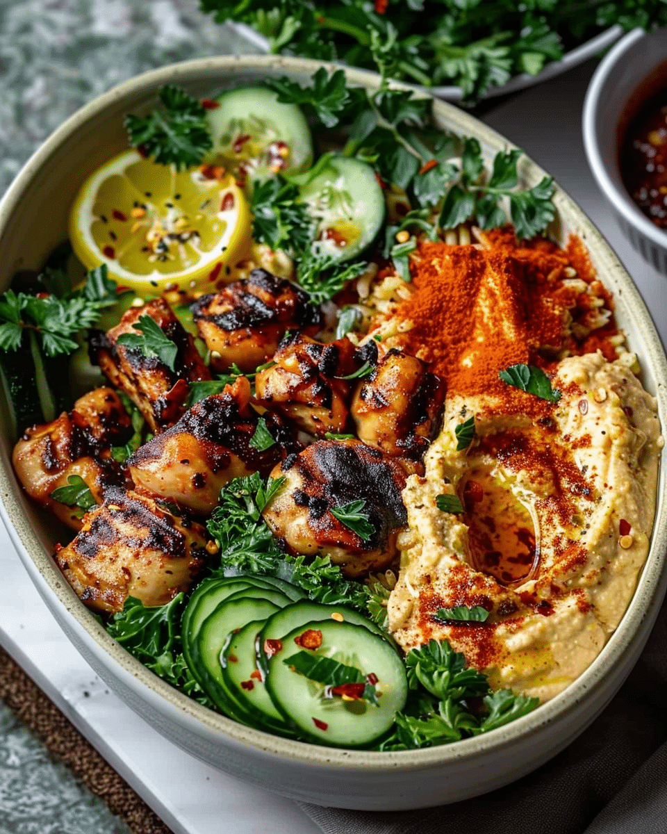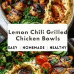 Lemon Chili Grilled Chicken Bowls are vibrant, wholesome meals featuring juicy grilled chicken marinated in a zesty lemon-chili blend, served over rice or greens with fresh toppings. Perfect for meal prep or quick dinners, they’re bold, balanced, and satisfying.