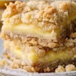 Lemon crumb bars are buttery, sweet, and tangy dessert bars featuring a bright lemon filling between layers of soft, crumbly crust. Made with pantry staples and fresh lemons, they’re simple yet delicious, perfect for any season or occasion.