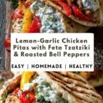 PrintLemon-Garlic Chicken Pitas with Feta Tzatziki & Roasted Bell Peppers