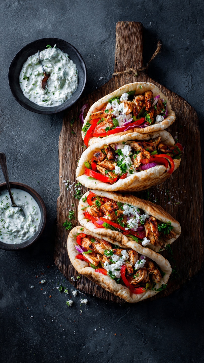 Lemon-Garlic Chicken Pitas are fresh and flavorful Mediterranean-inspired wraps made with tender marinated chicken, crisp vegetables, and creamy sauce all tucked into warm pita bread. Perfect for quick lunches, easy dinners, or meal prep.
