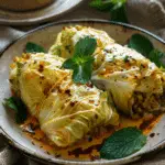 These lentil and rice stuffed cabbage rolls are a wholesome, plant-based twist on a comforting classic. Filled with spiced lentils, rice, and aromatics, then baked in a savory tomato sauce, they’re satisfying, nutritious, and perfect for dinner, meal prep, or make-ahead freezer meals.