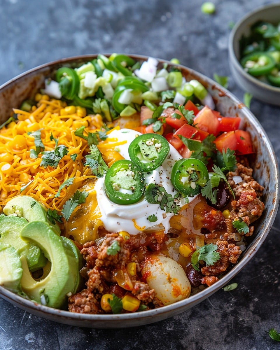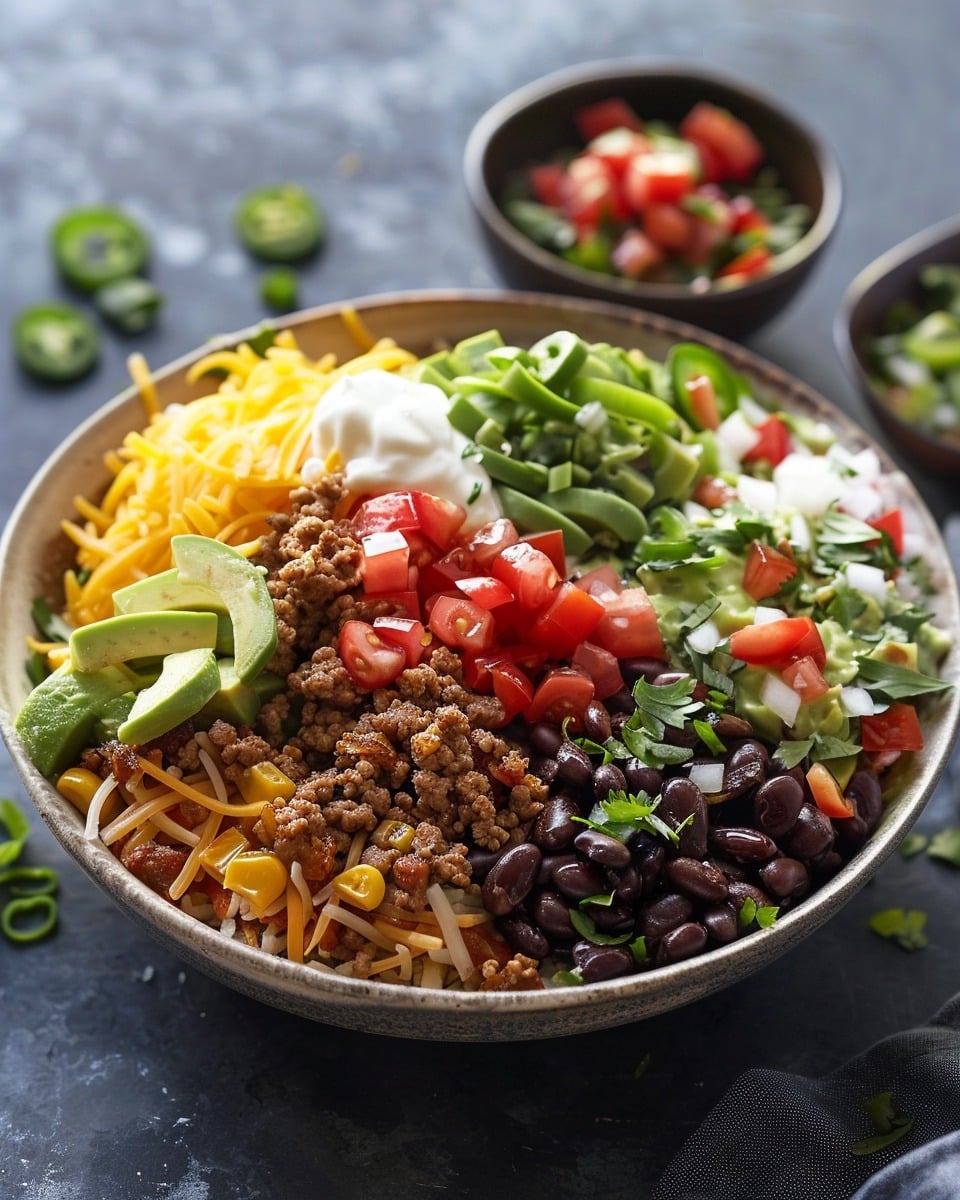 Sometimes I swap the meat for black beans or lentils for a vegetarian version. When I want more veggies, I add sautéed bell peppers, corn, or shredded cabbage. I’ve also made a breakfast-style version with scrambled eggs and breakfast sausage—it’s so good with potatoes. And when I want extra heat, I drizzle hot sauce or chipotle mayo on top.