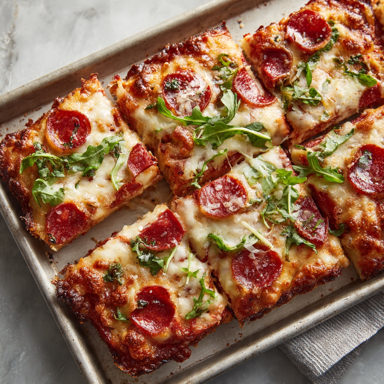 I enjoy this recipe because it combines simplicity with comforting flavors. The dough is easy to prepare and spreads nicely across the sheet pan, creating a thick, soft base that holds all the toppings beautifully. I also like that the sauce is flavorful but not overpowering, which allows the cheese and toppings to shine.