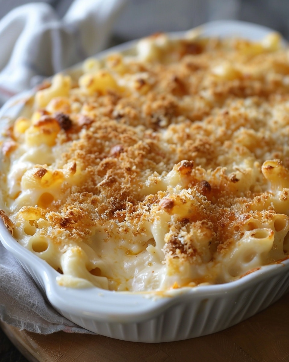 Mac and Cheese with Crispy Parmesan-Phyllo Crust is a gourmet twist on classic comfort food. Creamy, cheesy macaroni is baked under a golden, flaky phyllo topping layered with Parmesan for a rich, crunchy finish. Perfect for dinner parties or cozy nights in.