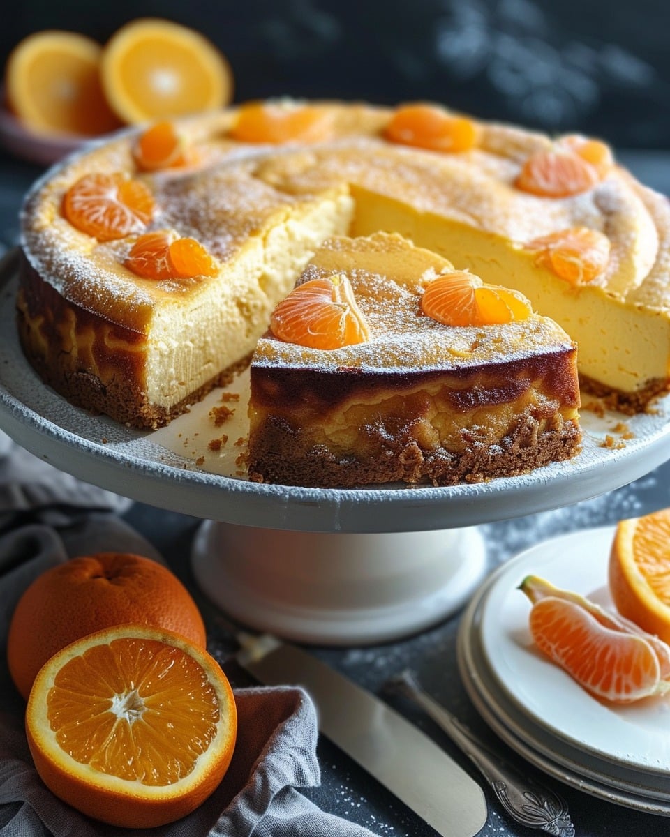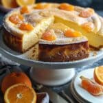 A rich and creamy Basque cheesecake infused with bright mandarin orange flavor, featuring a caramelized top and a soft, custardy center for a unique and elegant dessert.