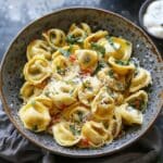 Marry Me Tortellini is a rich and creamy one-pan pasta dish made with cheese tortellini, sun-dried tomatoes, garlic, and a luscious parmesan cream sauce. A quick, romantic, and comforting meal ready in under 30 minutes.