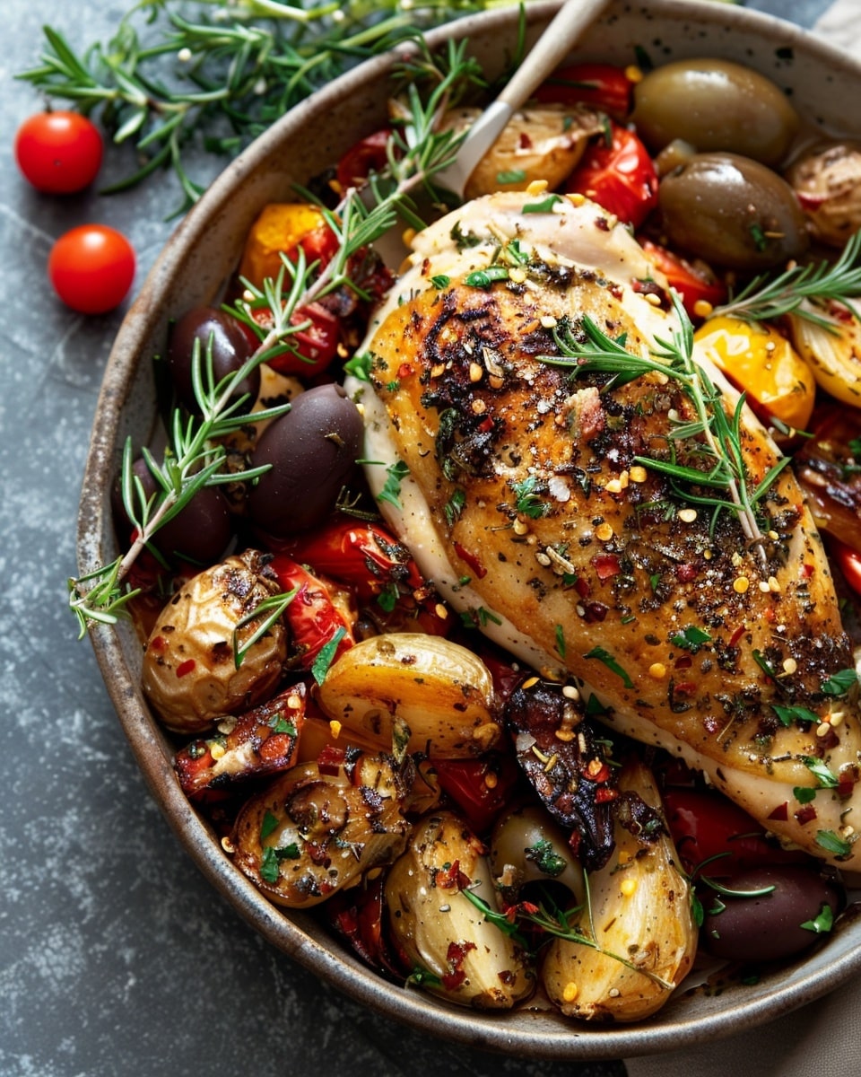 Mediterranean baked chicken is a vibrant, flavorful dish that combines juicy chicken with bold ingredients like tomatoes, olives, garlic, and herbs. I love how everything roasts together in one pan, creating a savory sauce that’s full of depth and perfect for spooning over rice, couscous, or crusty bread. It’s an easy and wholesome meal that never fails to satisfy.