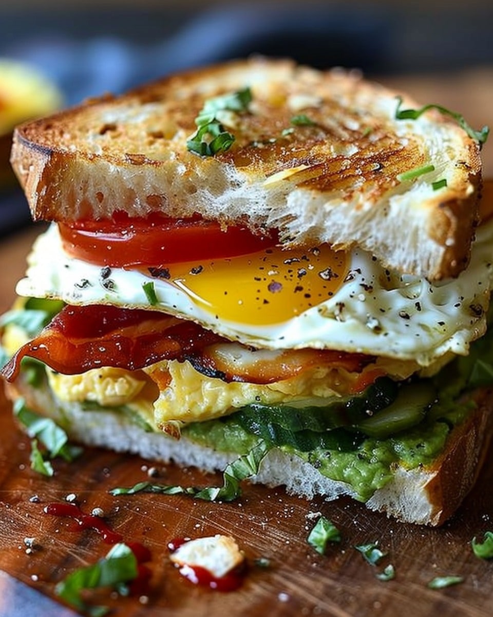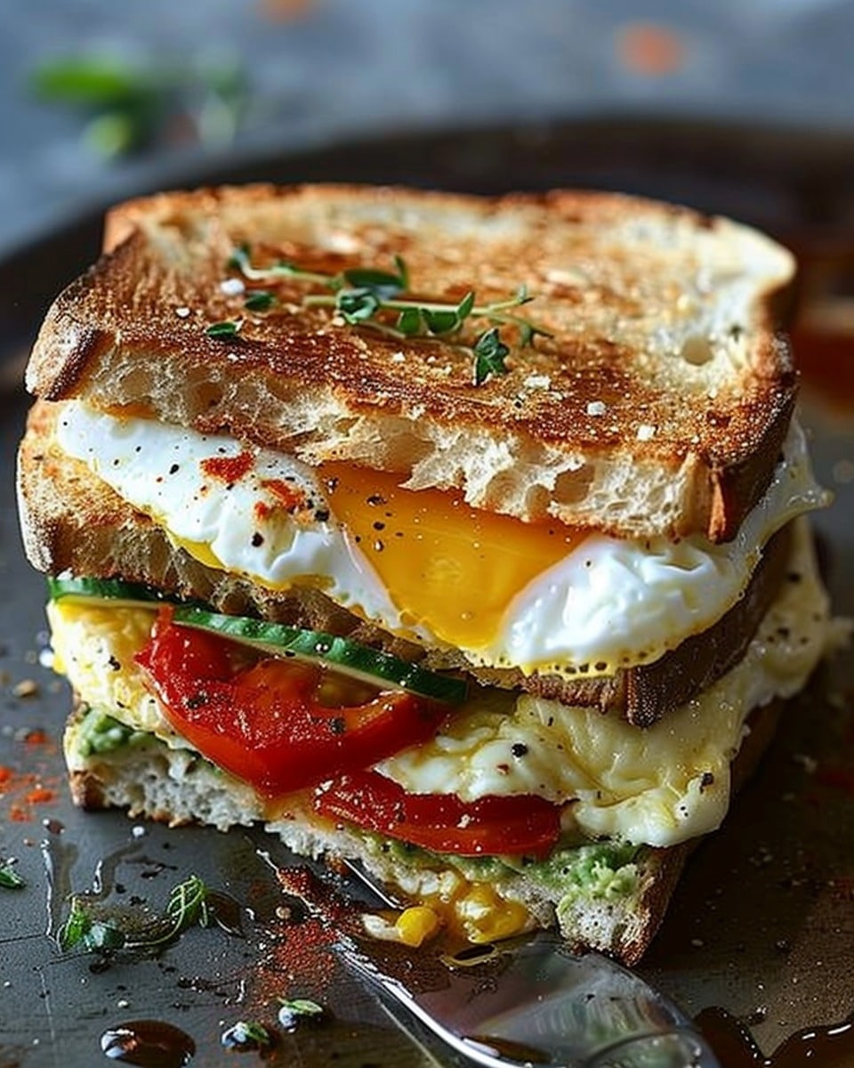 A hearty yet fresh Mediterranean-inspired breakfast sandwich made with eggs, spinach, tomato, feta, and olives. Savory, balanced, and quick to prepare, it’s perfect for busy mornings or relaxed brunches.