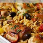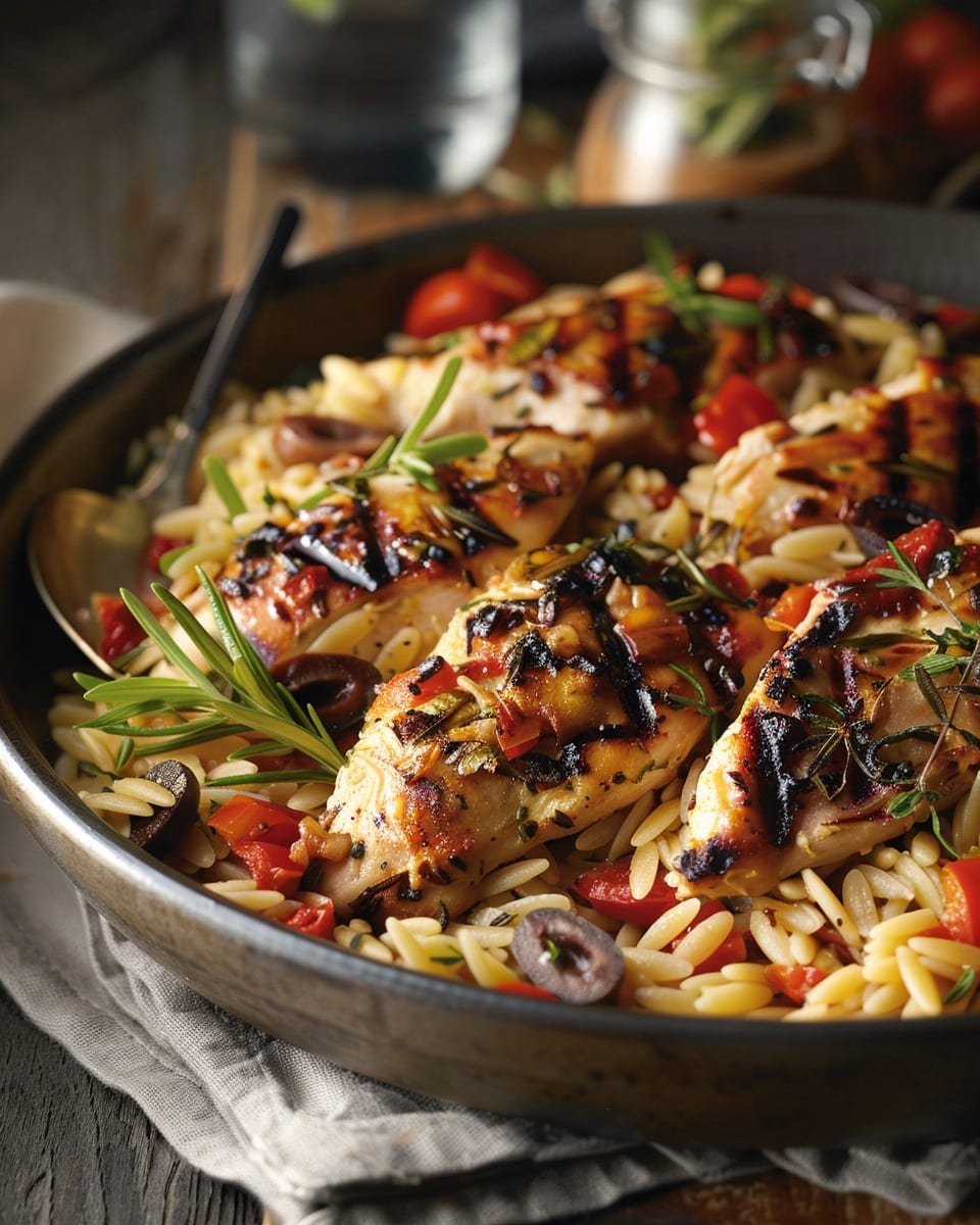 Mediterranean Chicken Orzo is a one-skillet meal packed with tender chicken, lemony orzo, briny olives, juicy tomatoes, and fresh herbs. It’s bright, comforting, and perfect for busy weeknights or casual dinners with friends.
