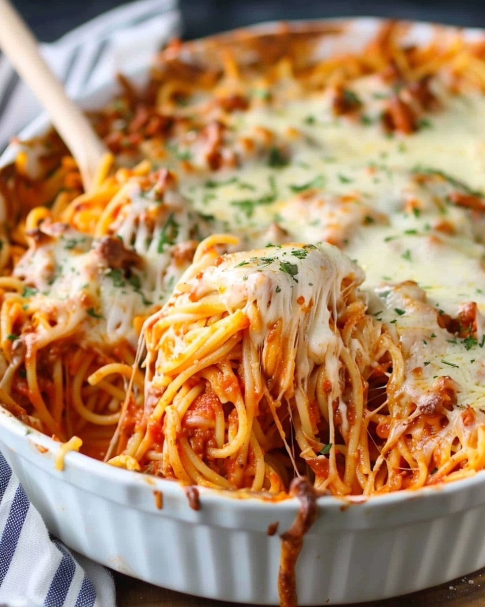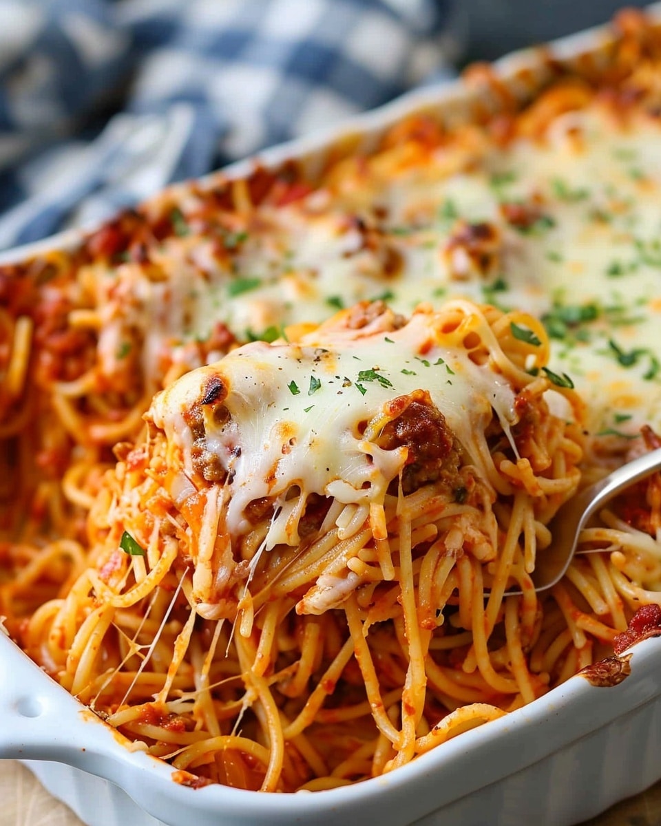 I like this recipe because it’s easy to make, family-friendly, and great for leftovers. The combination of ground beef, marinara sauce, and a velvety cheese layer baked between spaghetti and more cheese creates the kind of dish I crave on cozy nights. It’s also ideal for meal prep or gatherings because it can be made ahead and baked when needed.