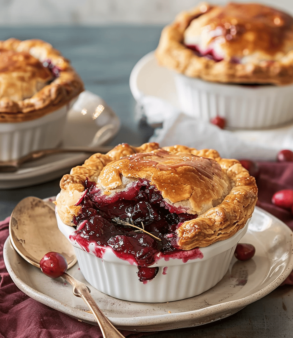 I love how easy and festive these mini potpies are. They’re just the right size for individual servings, making them perfect for dinner parties or holiday gatherings. The cranberries provide a refreshing tartness that pairs beautifully with sugar and spices, while the golden pastry crust adds a satisfying crunch. Plus, I can prepare them ahead and simply pop them in the oven when it’s dessert time. It’s a no-fuss, all-flavor kind of treat.