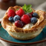 This mini pancake cereal bowl transforms classic pancakes into tiny, bite-sized treats served like cereal. Drizzled with maple syrup, topped with fresh fruit, and finished with a splash of milk, it is a playful and cozy breakfast everyone will love.