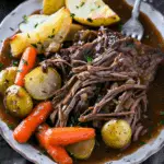 This Mississippi pot roast is a tender, flavorful slow-cooked beef dish made with ranch seasoning, au jus mix, butter, and tangy pepperoncini. With just a few pantry ingredients and minimal prep, this easy pot roast recipe is perfect for busy weeknights or cozy family dinners. Serve it with mashed potatoes, rice, or rolls for a satisfying comfort food meal.