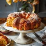 I bake the monkey bread for about 35 to 40 minutes, until the top is golden brown and cooked through. I let it cool for about 5 minutes, then carefully invert it onto a serving plate. I like serving it warm.