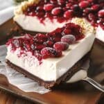 This No-Bake Cranberry White Chocolate Cheesecake is an elegant, creamy dessert that blends the richness of white chocolate with the tart brightness of cranberries. Topped with frosted cranberries for a sparkling finish, it’s a beautiful holiday centerpiece that doesn’t even require an oven.