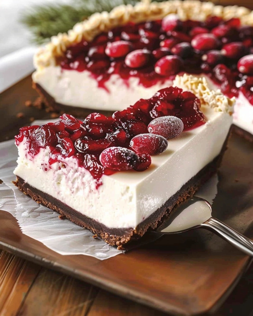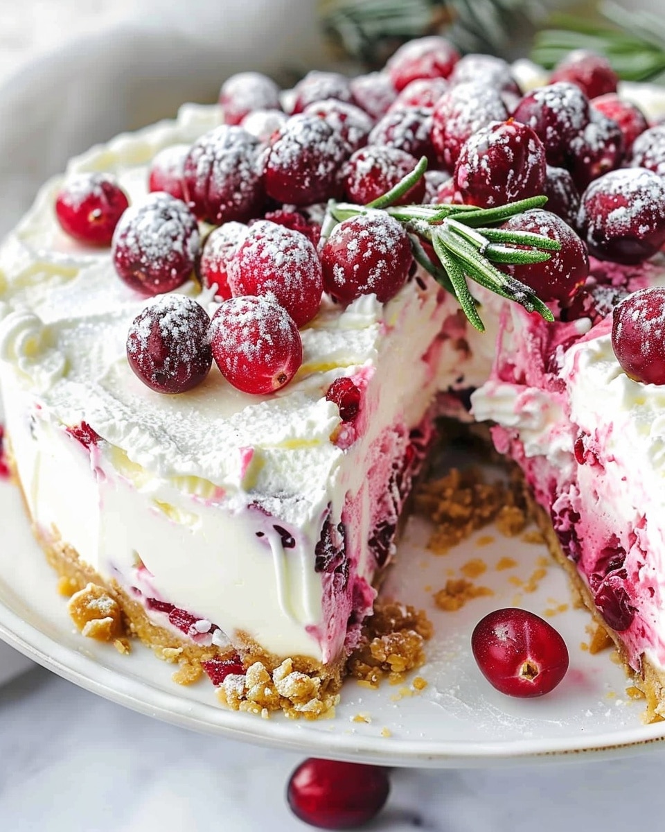I love this cheesecake because it’s rich and silky but not overly heavy. The white chocolate adds a smooth sweetness, and the cranberry swirl gives it a fresh, tangy balance. The frosted cranberries on top not only taste amazing but also make the whole dessert look magical—like it came straight from a winter wonderland.