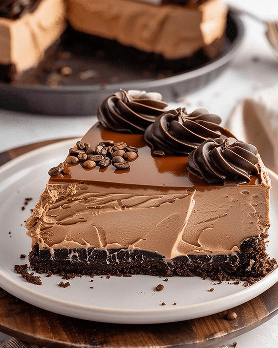 This No-Bake Mocha Cheesecake is a decadent dessert that combines creamy chocolate and bold coffee flavors in a smooth, velvety filling over a crunchy chocolate cookie crust. Easy to prepare and perfect for coffee lovers, it’s a show-stopping, oven-free treat.