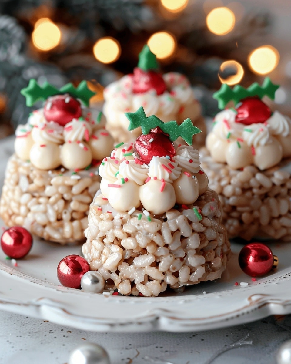 No-bake Rice Krispie puddings are festive, bite-sized treats made with crispy rice cereal, melted chocolate, and fun toppings. Quick to prepare and perfect for the holidays or any time you need a sweet, no-fuss dessert.