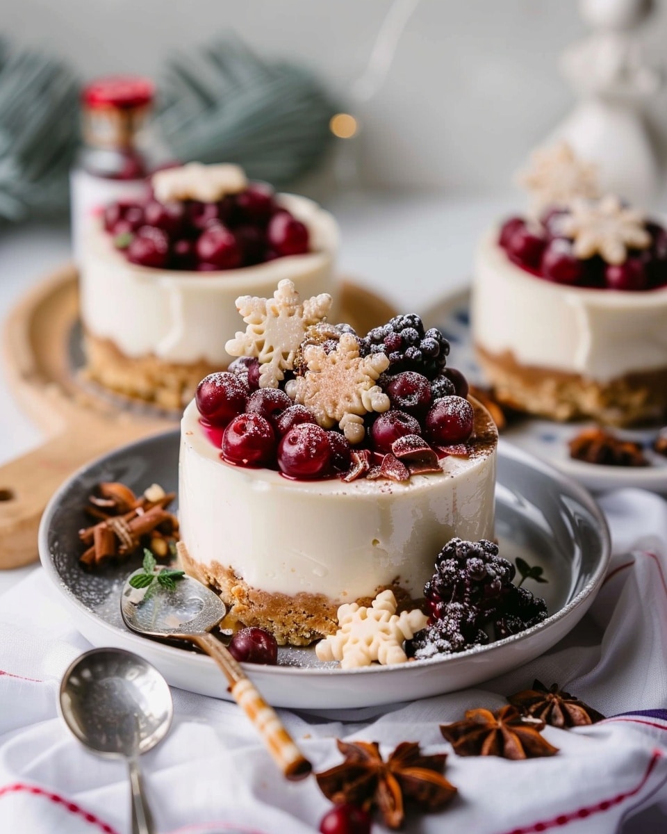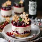 These no-bake white chocolate cheesecakes with mulled wine fruit are a festive, creamy dessert with a warmly spiced fruit topping. Served in individual portions, they’re elegant, make-ahead friendly, and perfect for holiday gatherings or cozy nights in.