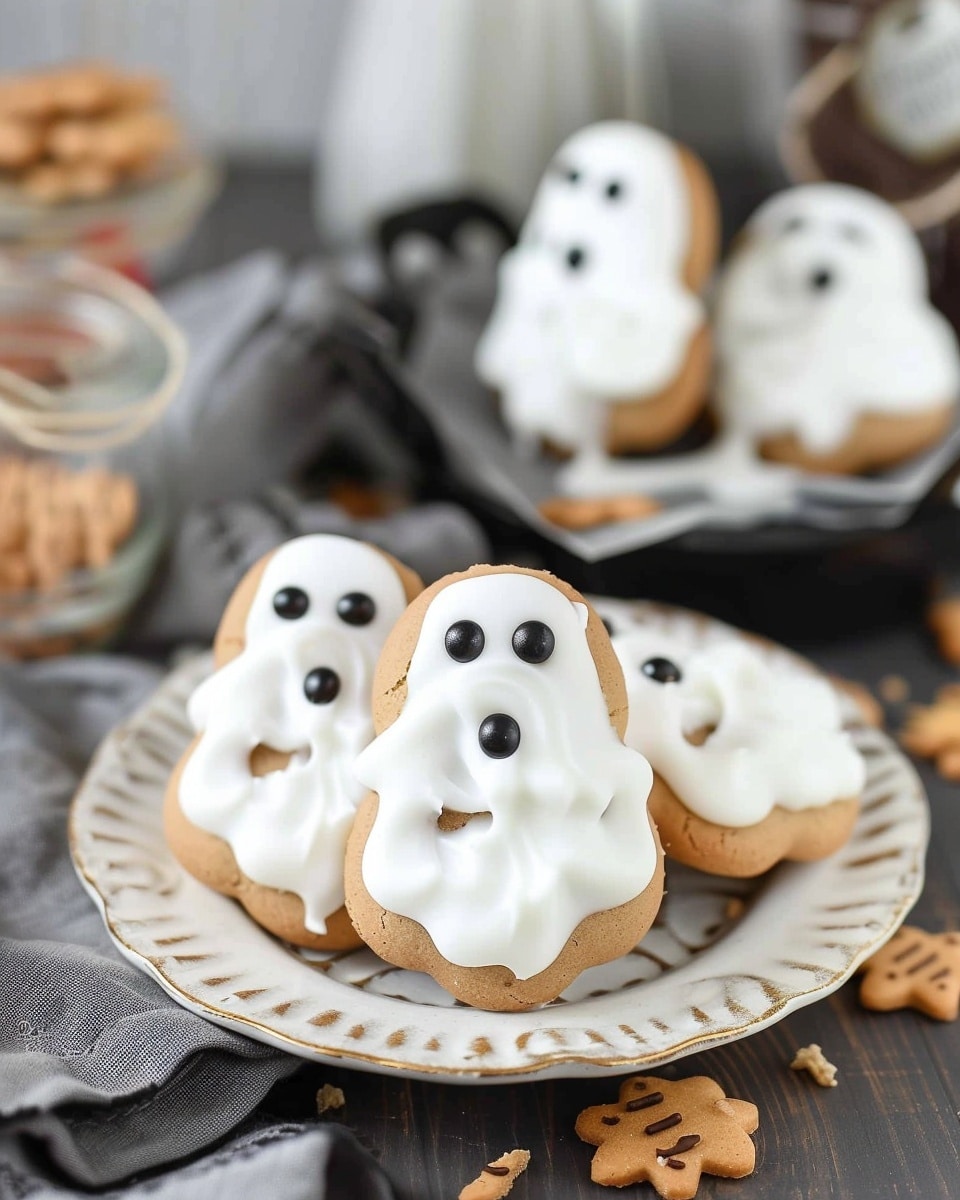 I store these ghost cookies in an airtight container at room temperature for up to 5 days. If my kitchen is warm, I keep them in the fridge so the coating stays firm. There’s no reheating needed—just grab and go.